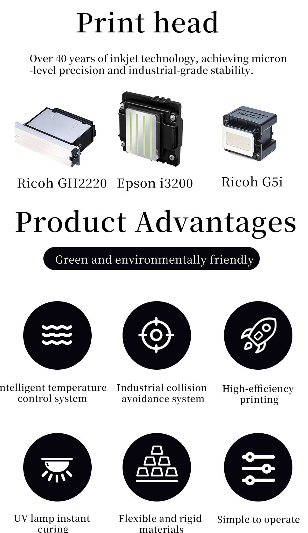 Adopting new 7 pcs grey level Ricoh GH2220 industrial micro piezo print head;