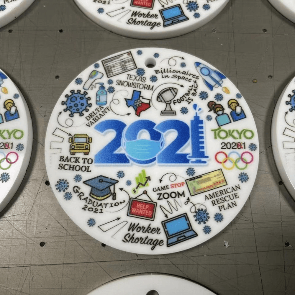 Print CMYK, white ink and varnish (optional).