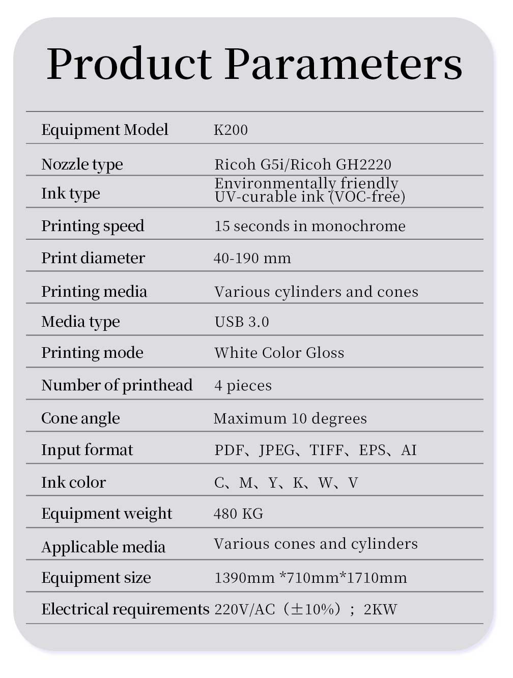 K200 high speed rotary clylinder printer